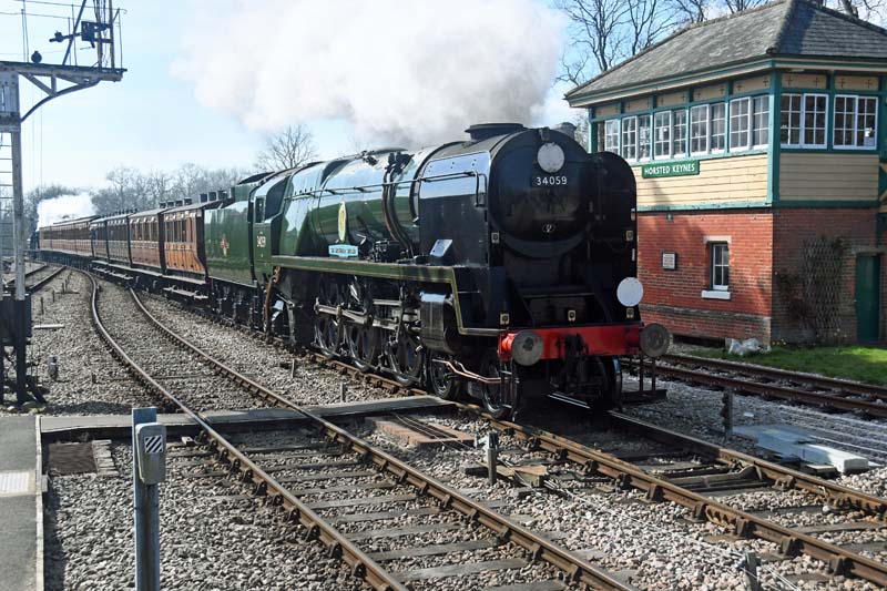 SR Battle of Britain class no.34059 Sir Archibald Sinclair approachinf Horsted Keynes.