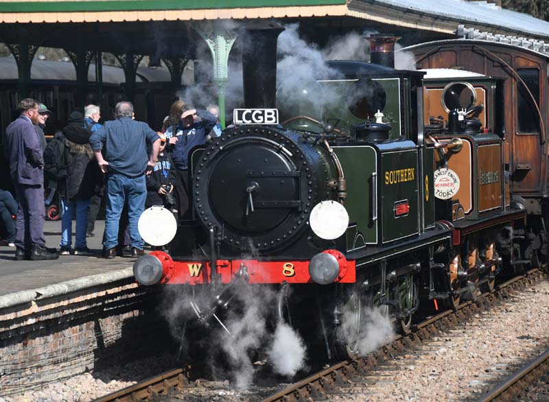 LBSCR A1X class no.W8 Freshwater and LBSCR Terrier class no.75 Fenchurch at Horsted Keynes.