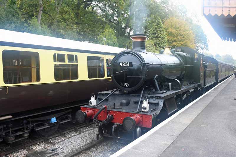 WSR Mogul no.9351 arriving at Crowcombe Heathfield.