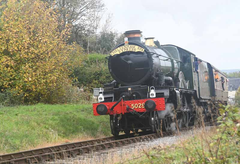 GWR Castle class no.5029 Nunney Castle approaches Crowcombe Heathfield.