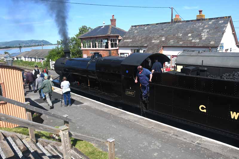 GWR 28xx class no.2807 approaching Blue Anchor with the goods train.