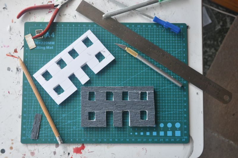 out of slate wall effect plastic card over a 5mm foamboard core. This project is currently ongoing.