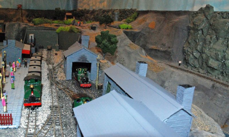The Glanfa Newydd loco works with No.12 John, No.10 Philip, No.6 Ruth and No.9 Millie.