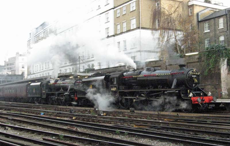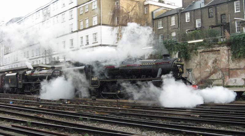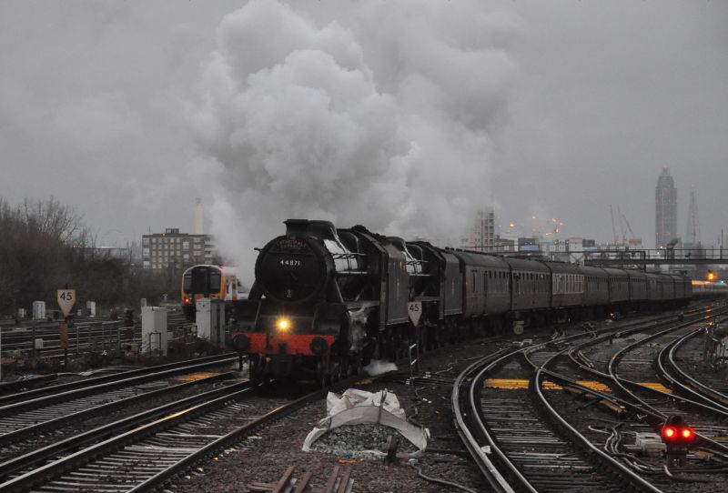 Approaching Clapham Junction, double-heading with 45407. 16th December 2013