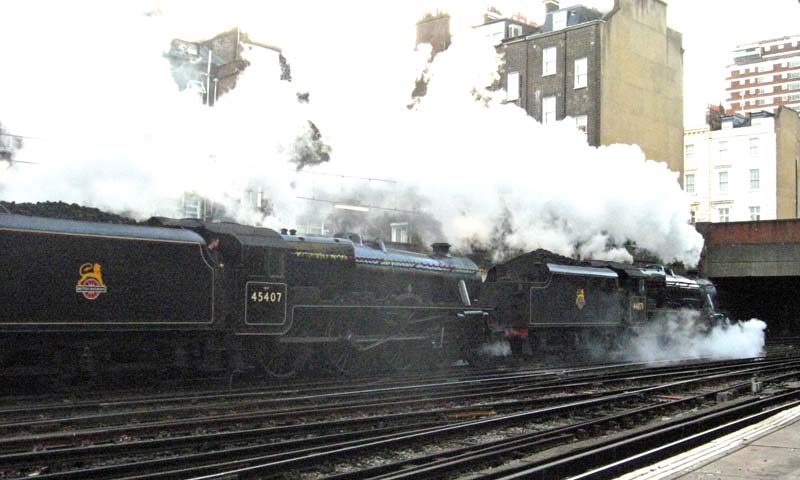Departing from London Victoria, double-heading with 44871. 20th December 2014