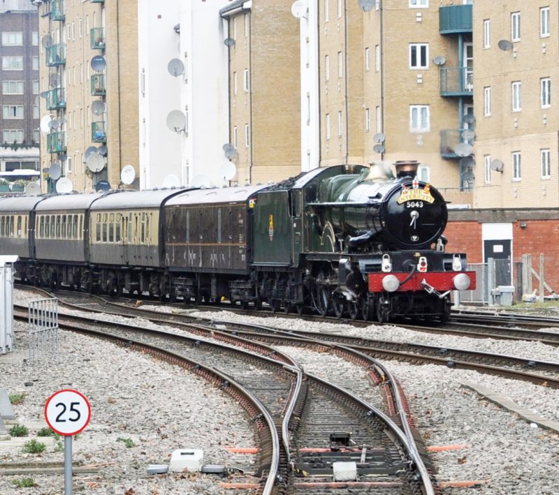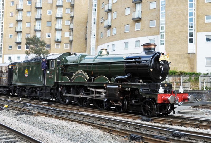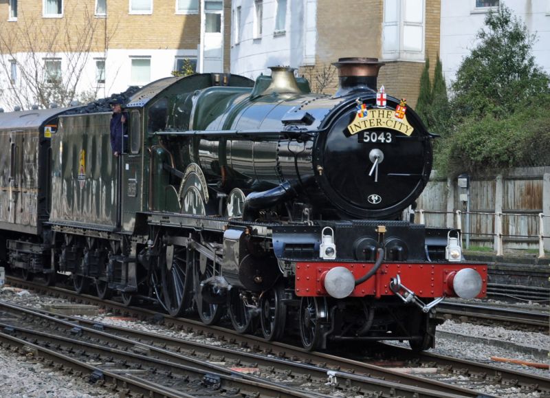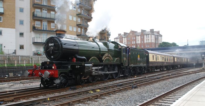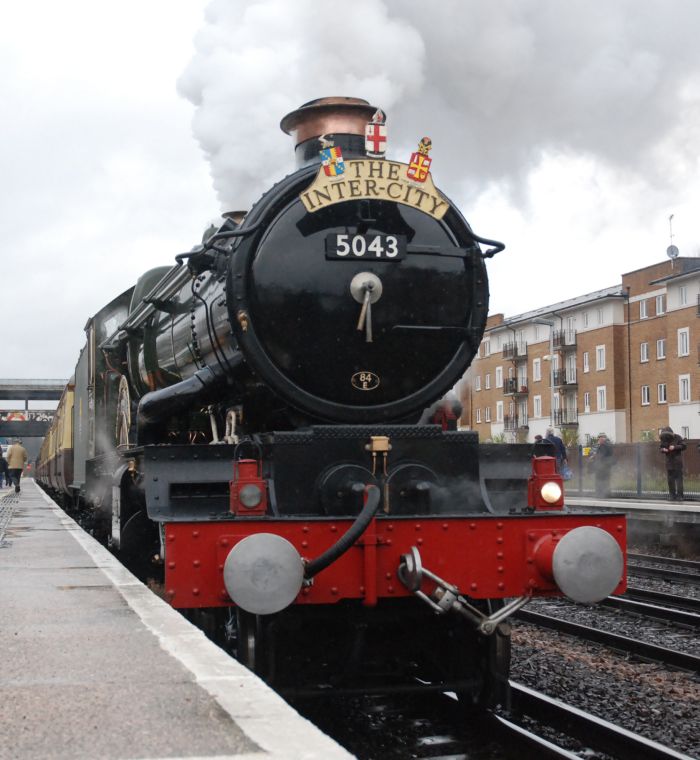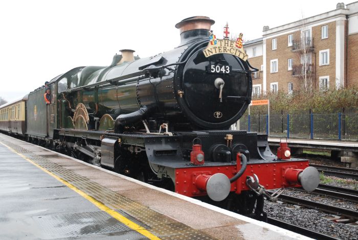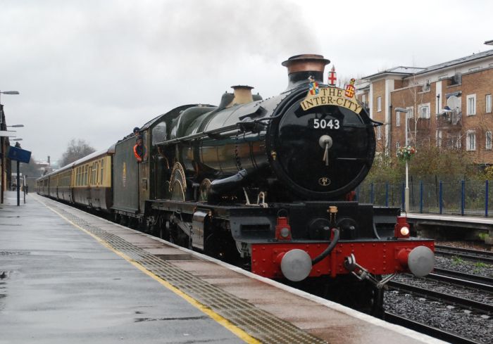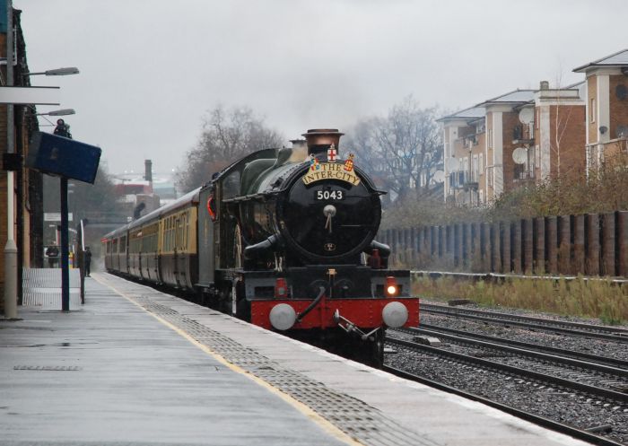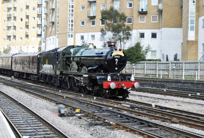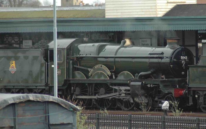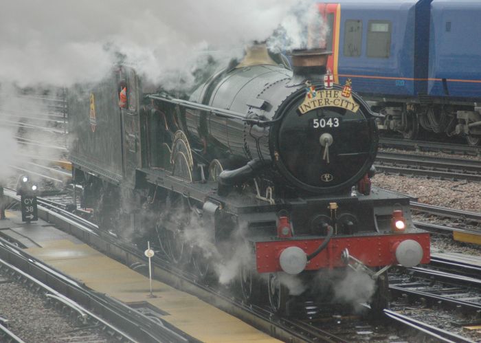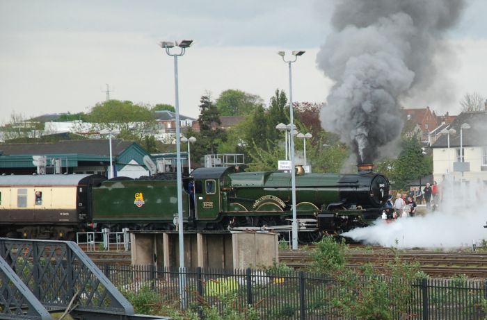 Arriving at Didcot Parkway double-heading with 4965 Rood Ashton Hall. 2nd April 2011.