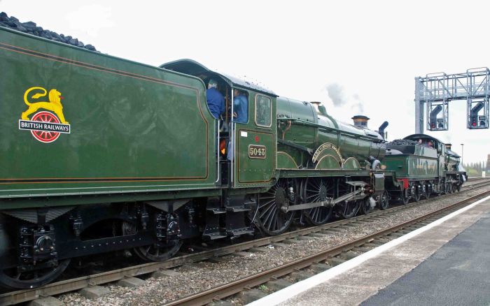 At Didcot Parkway double-heading with 4965 Rood Ashton Hall. 2nd April 2011.