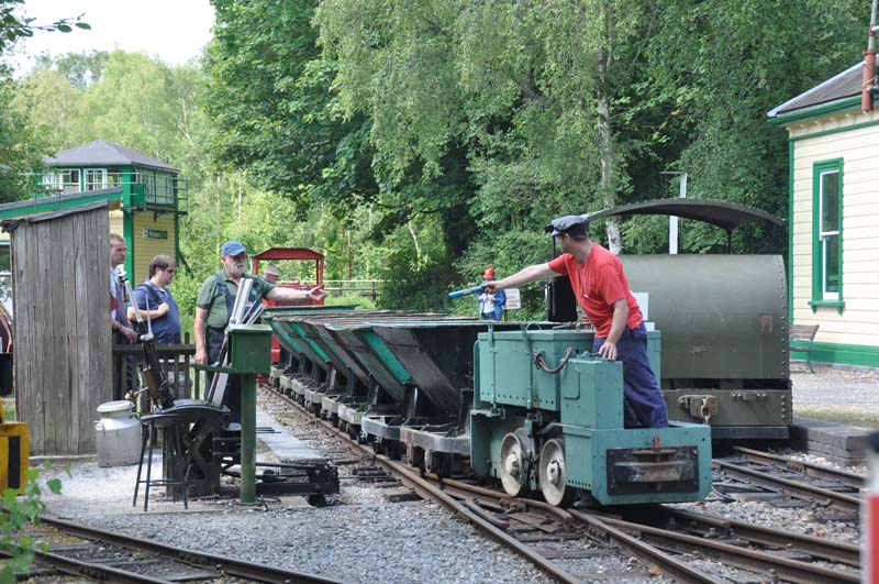 The tipper wagon train, with the driver of the electric loco at the rear about to return the token.
