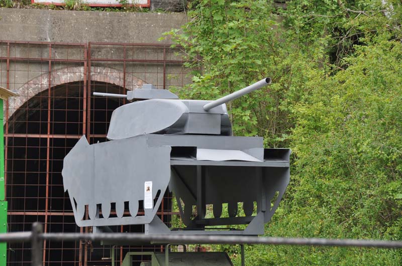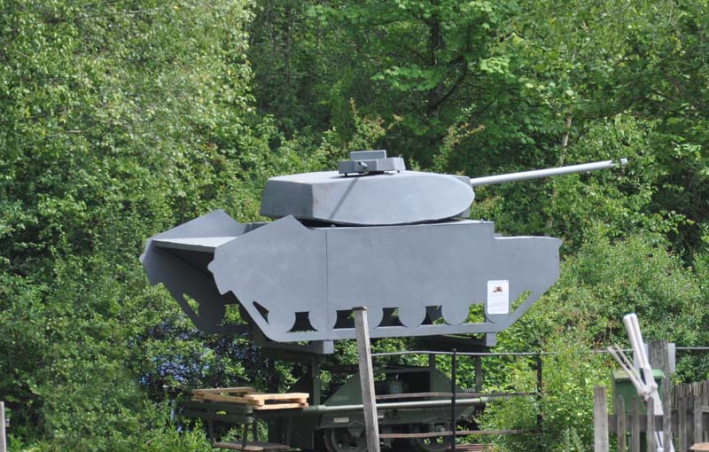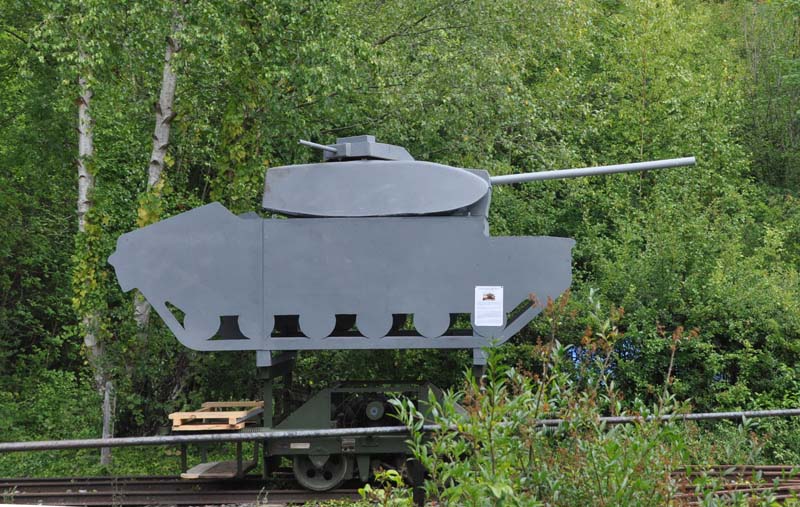 MOD Wickham target trolley with tank target mounted on it.