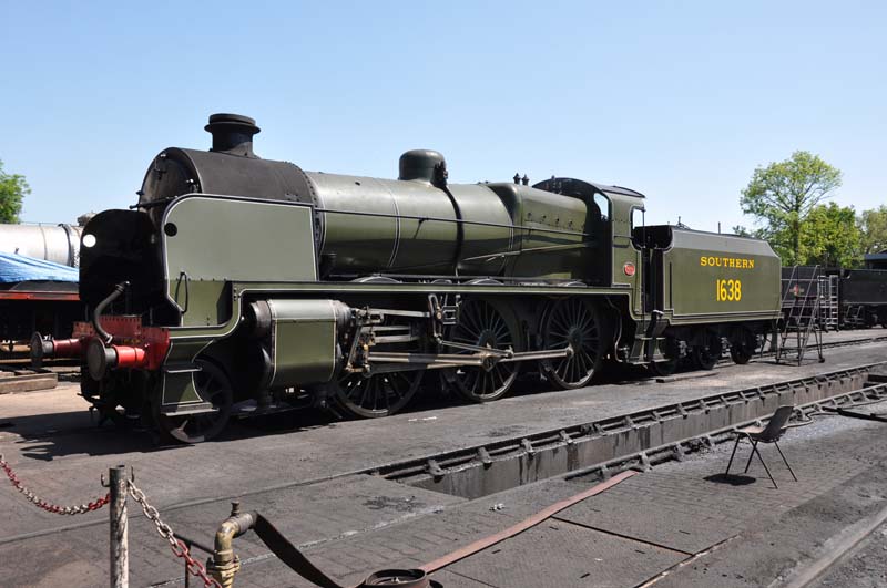SR U class no.1638 outside the loco shed at Sheffield Park.