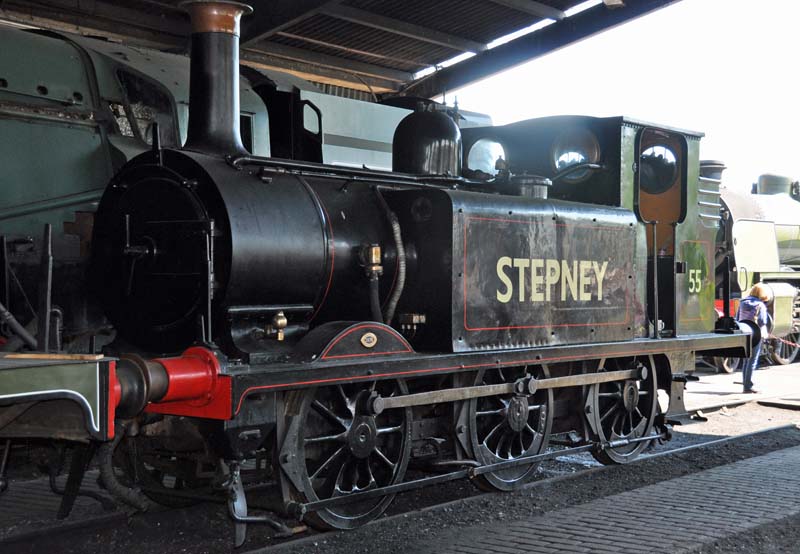 LBSCR A1X class no.55 Stepney in the loco shed at Sheffield Park.