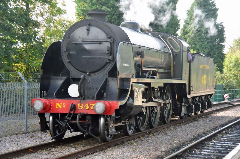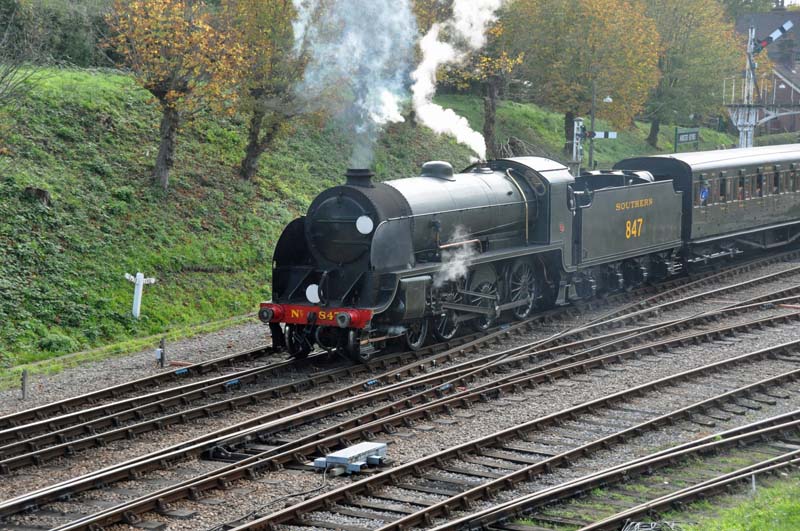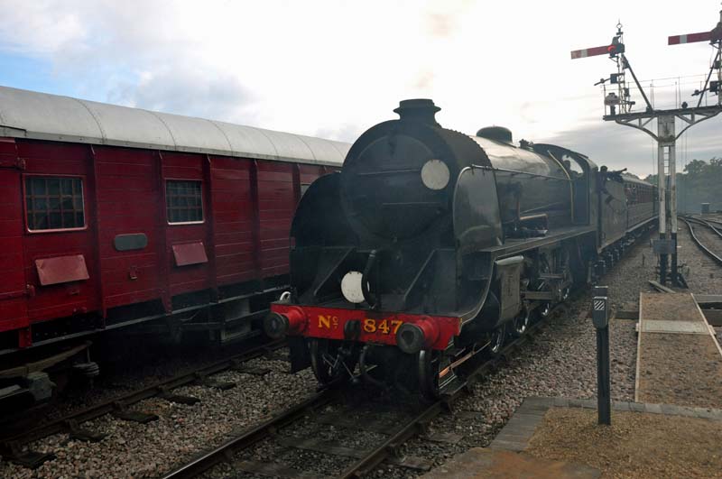 SR S15 class no.847 approaching Horsted Keynes while 65 waits in the siding.