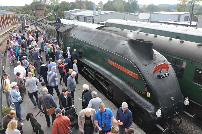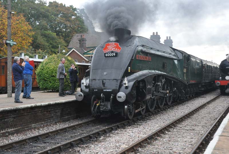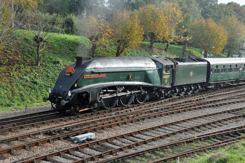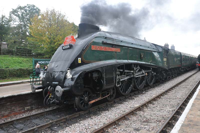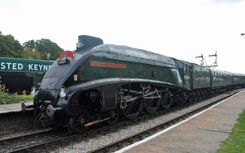 LNER A4 class no.60009 Union of South Africa approaching Horsted Keynes.