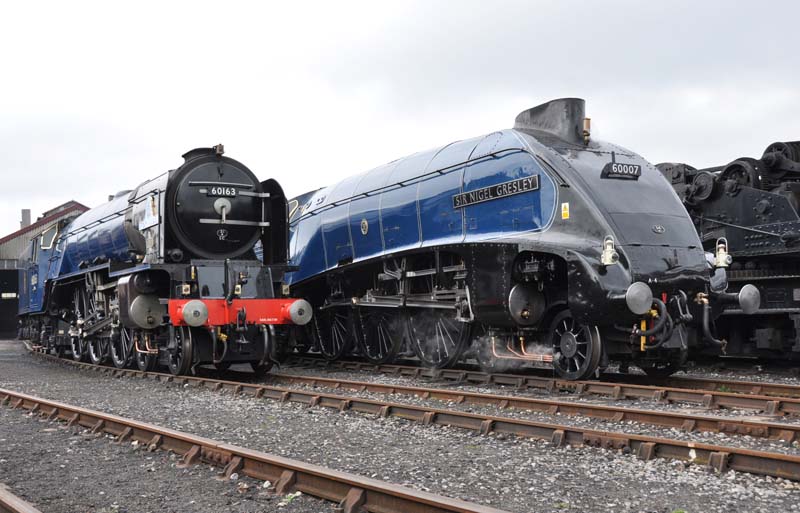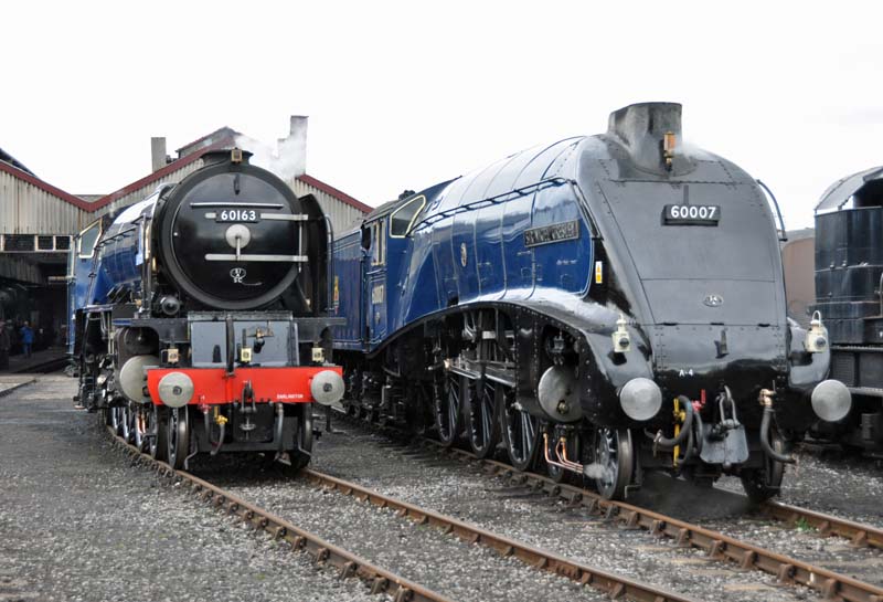 60163 Tornado and 60007 Sir Nigel Gresley outside the loco shed.