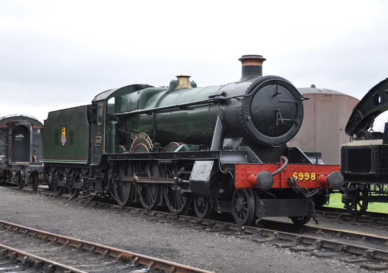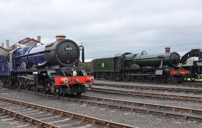 6023 King Edward II and 6998 Burton Agnes Hall outside the loco shed.