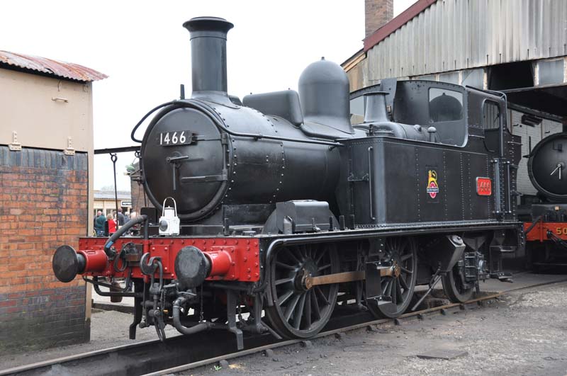 1466 outside the loco shed with 5051 Earl Bathurst inside the shed.