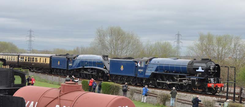 60007 Sir Nigel Gresley and 60163 Tornado on the main demonstration line.