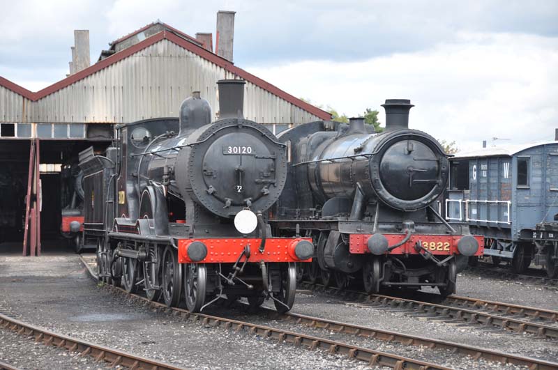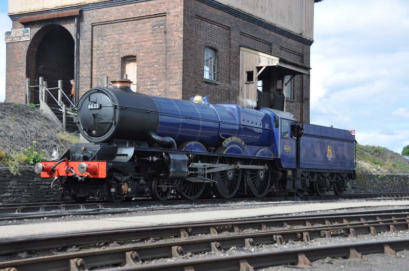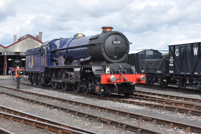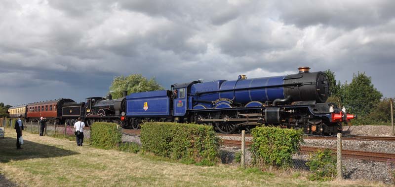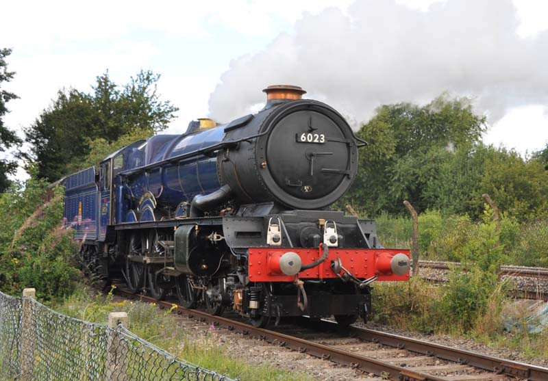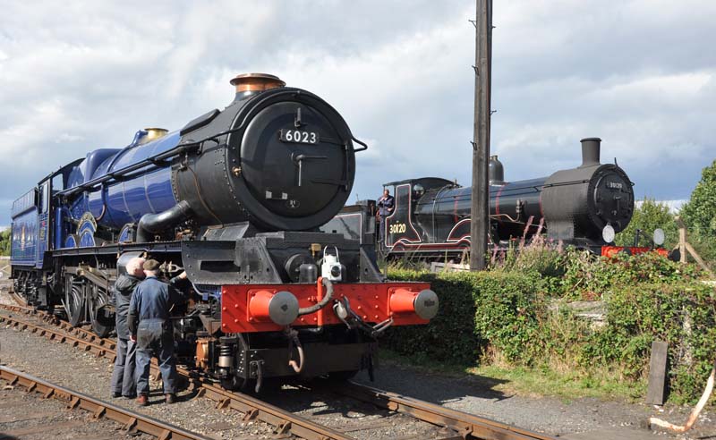 6023 King Edward II waits to join the main demonstration line as 30120 passes.