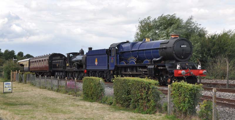 6023 King Edward II and 30120 double heading on the main demonstration line.