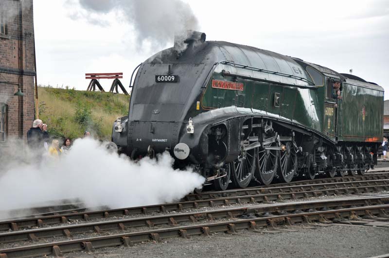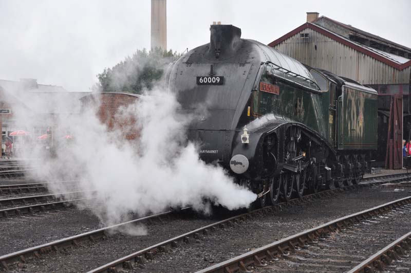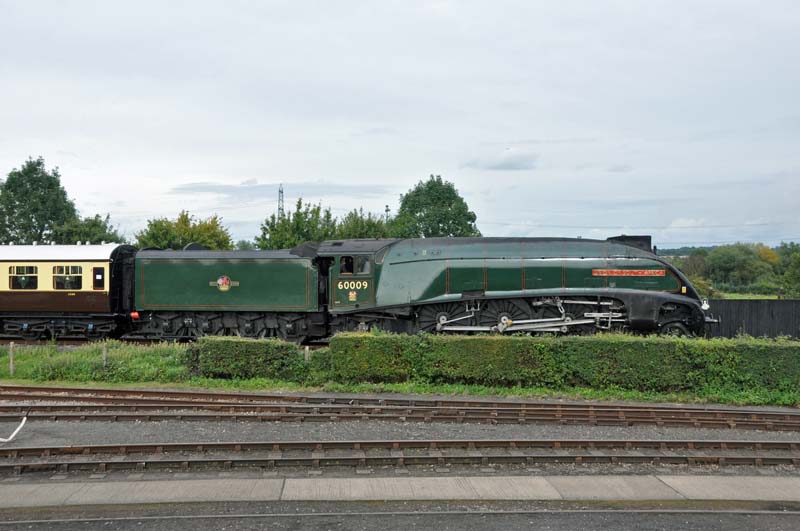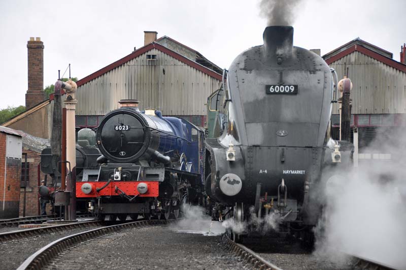 GWR 6023 King Edward II and LNER A4 60009 Union of South Africa outside the loco shed.