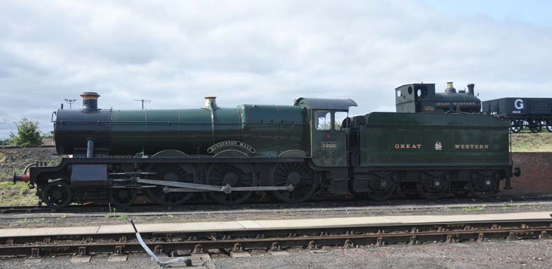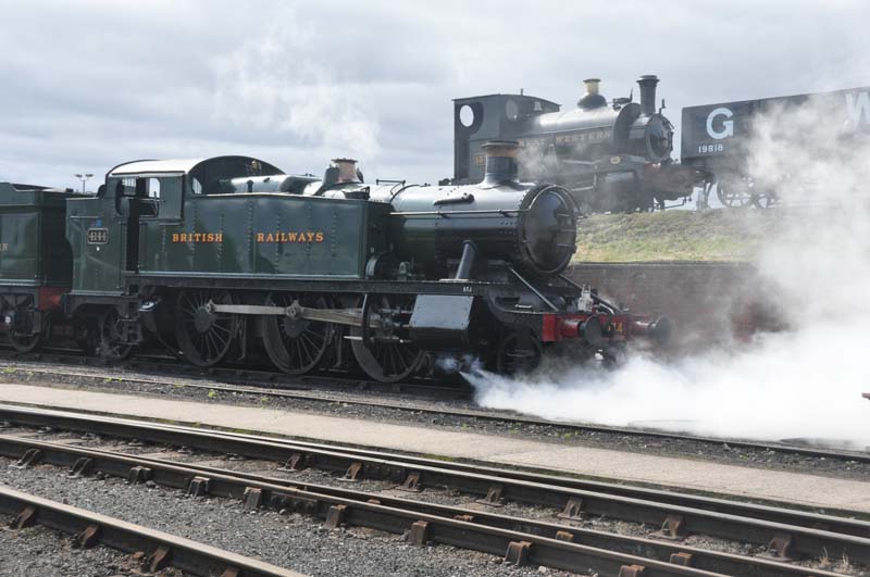 4144 approaching the loco shed with 5900 Hinterton Hall in the background.
