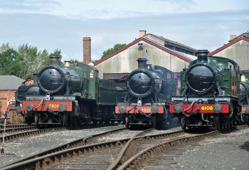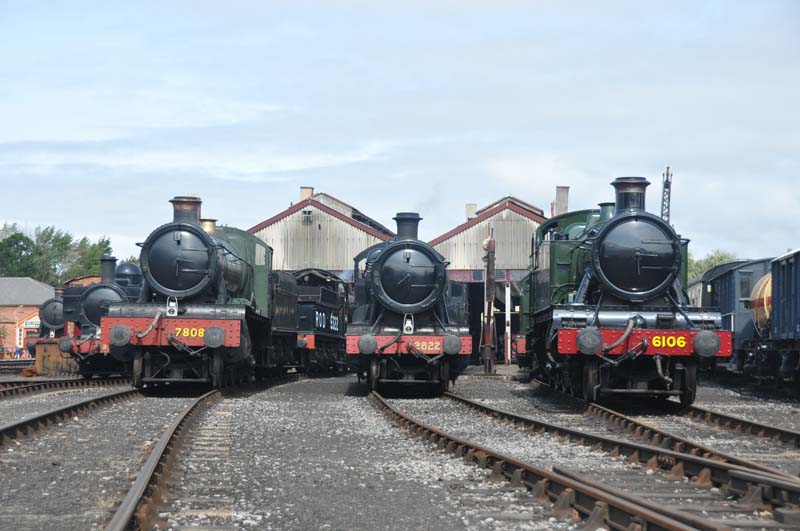 7808 Cookham Manor, 3822 and 6016 outside the loco shed.