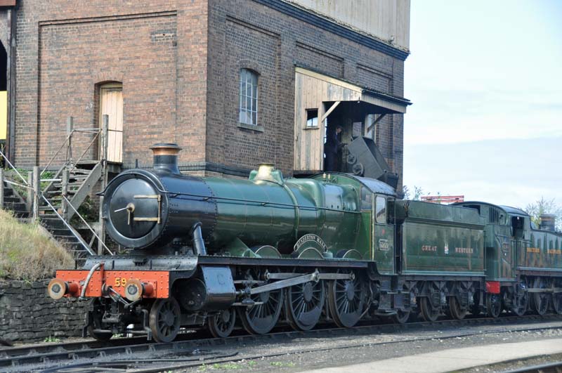 1338 with coal wagons on the coaling stage ramp with 5900 Hinterton Hall at the coaling stage.