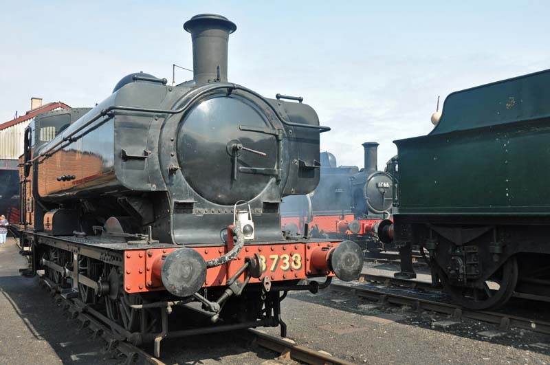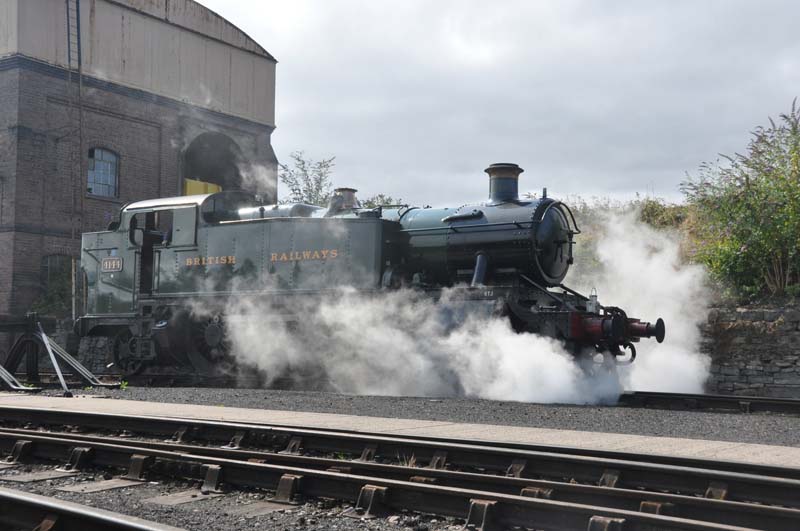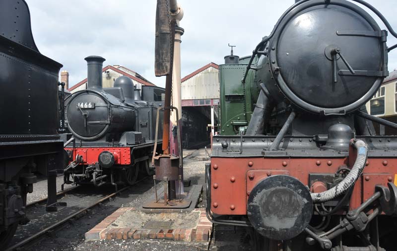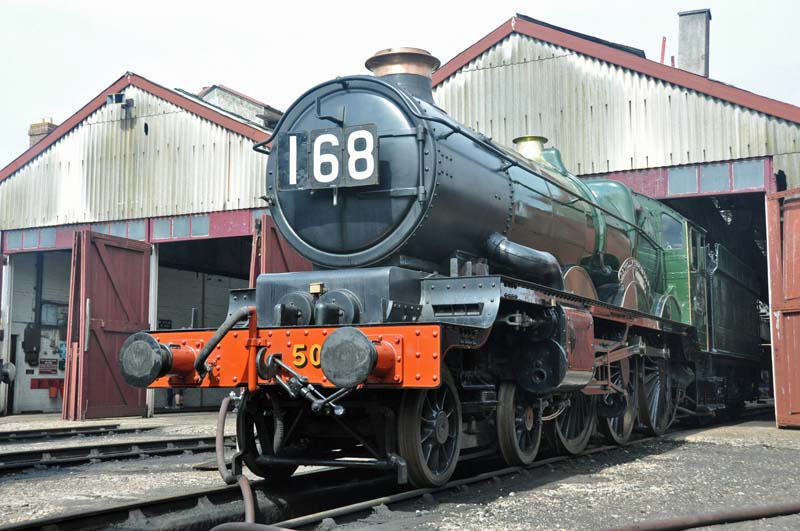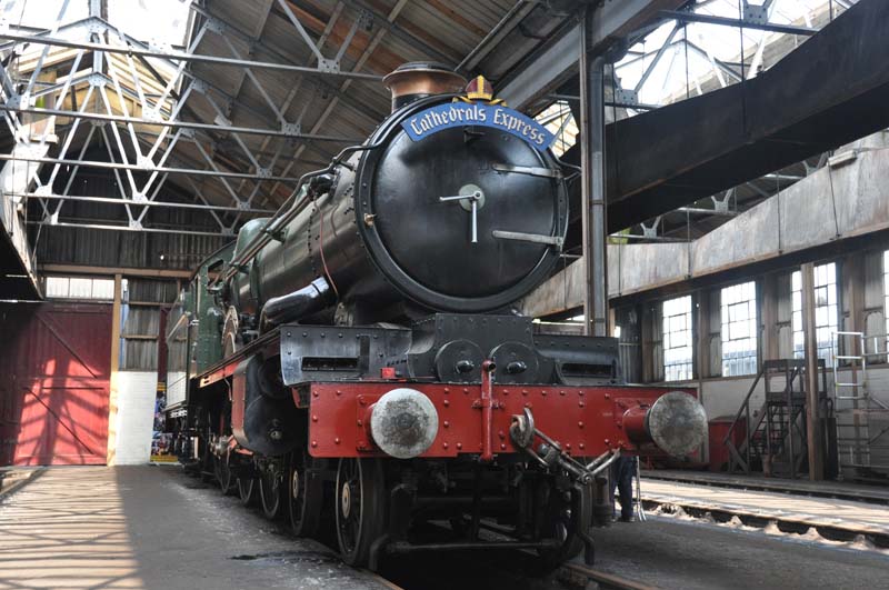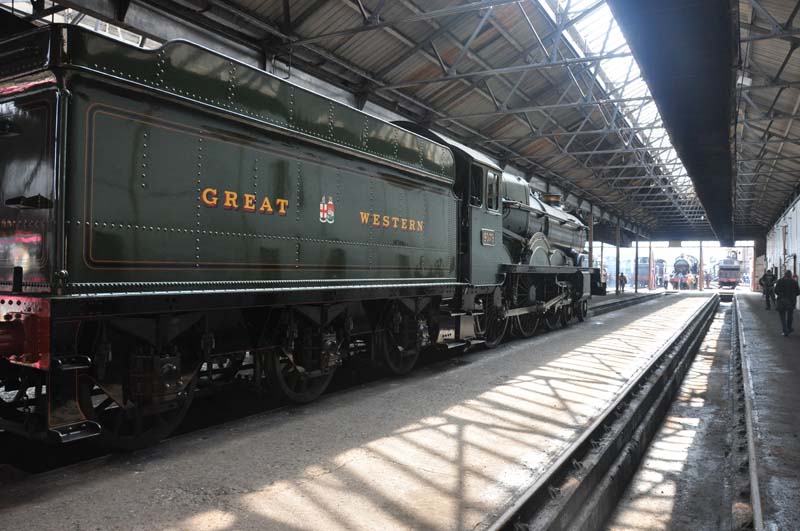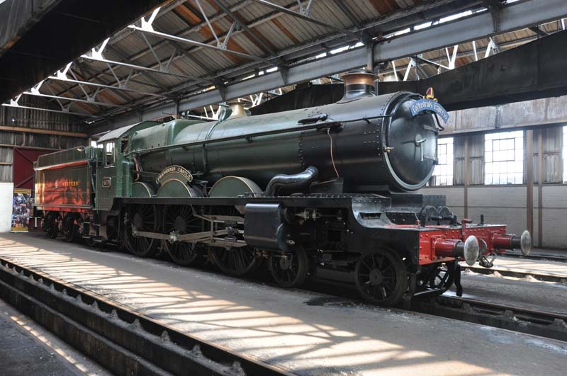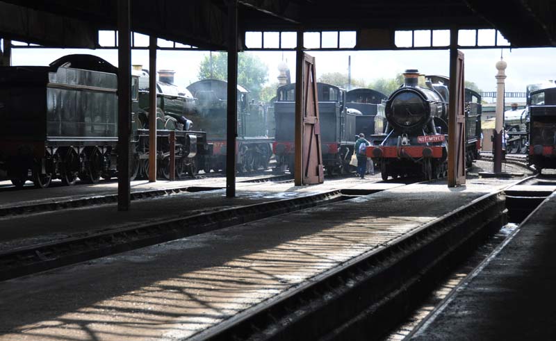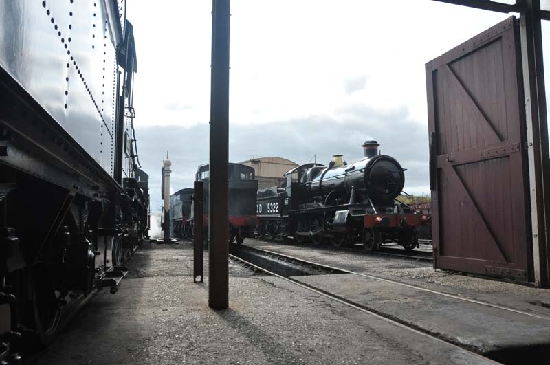 Looking out of the loco shed. 5051 Drysllwyn Castle on the left and 5322 facing into the shed.
