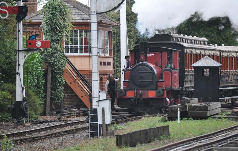 Captain Baxter's crew collect the token from the signalman on the branch line.