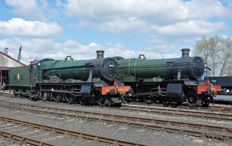 6998 Burton Agnes Hall and 7808 Cookham Manor outside the loco shed.