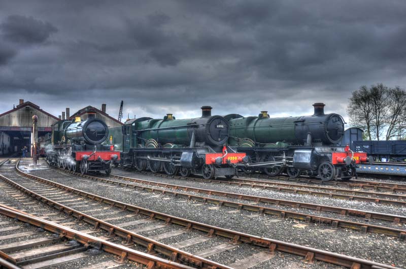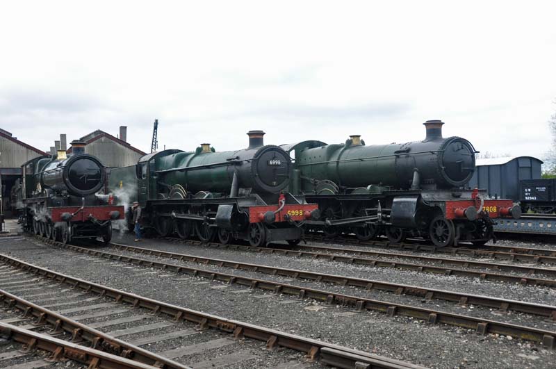 2999 Lady of Legend along with 6998 Burton Agnes Hall and 7808 Cookham Manor outside the loco shed.