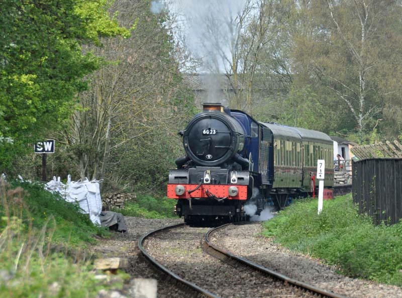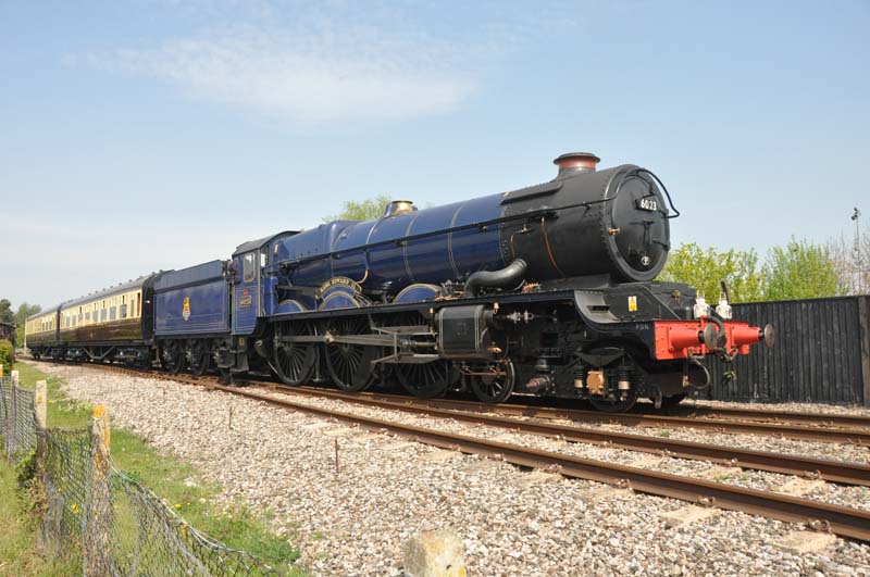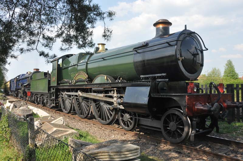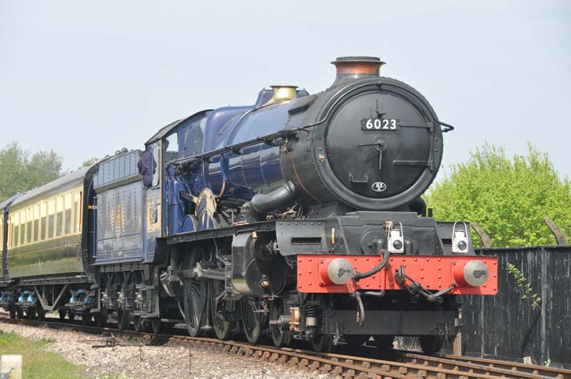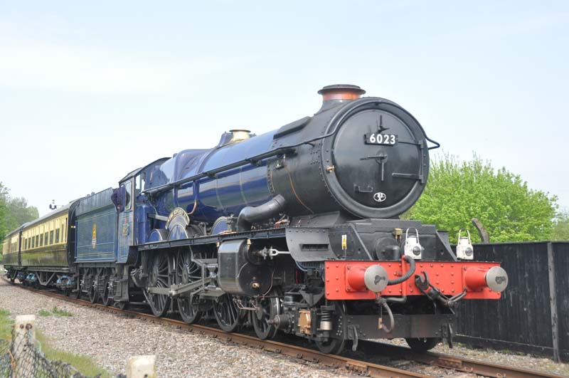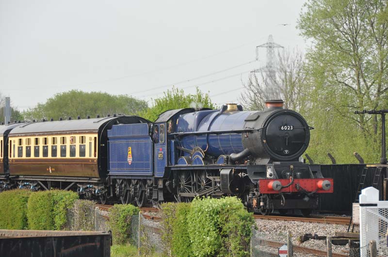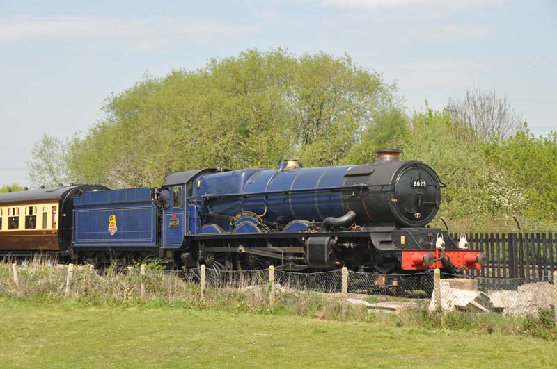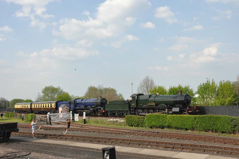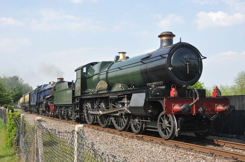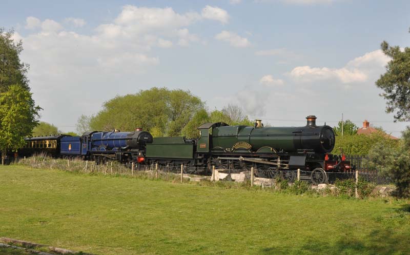 6023 King Eward II and 2999 Lady of Legend double-heading on the main demonstration line.