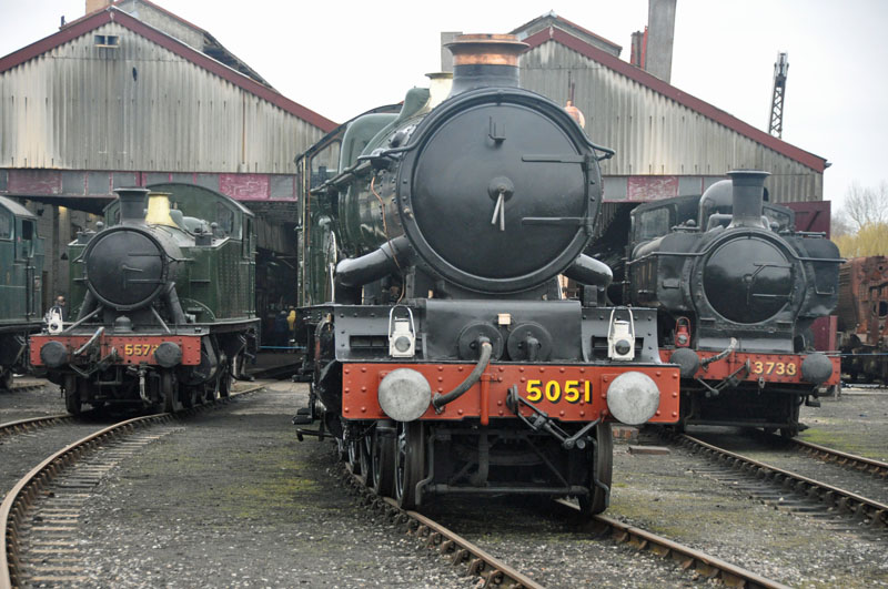 5572, 5051 Drysllwyn Castle and 3738 outside the loco shed.