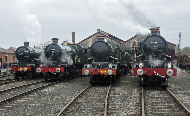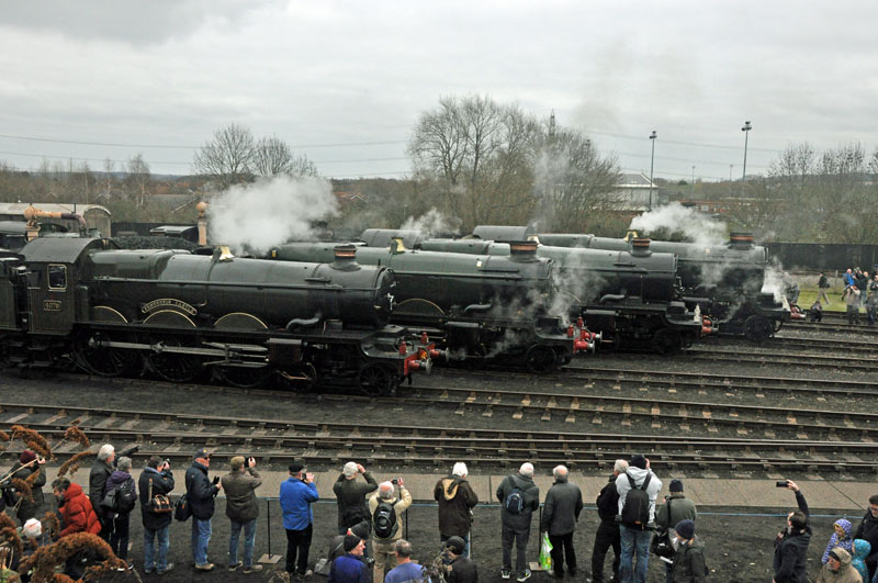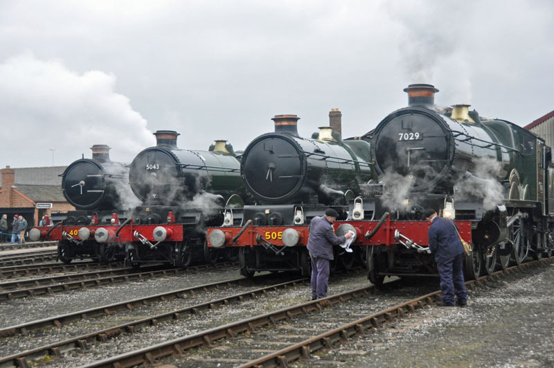 A final line up- 7029 Clun Castle and 5043 Earl of Mount Edgcumbe and 4079 Pendennis Castle