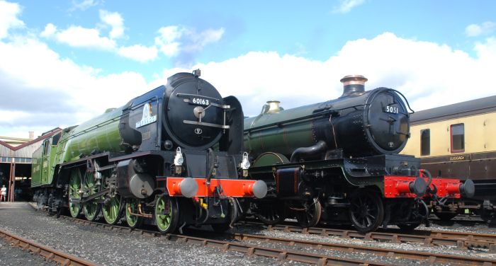 60163 Tornado and 5051 Earl Bathurst outside the loco shed.