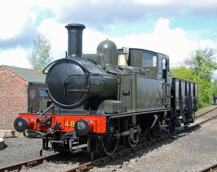 Tank engines 5572, 6697 and 4144 form the second row outside the engine shed.