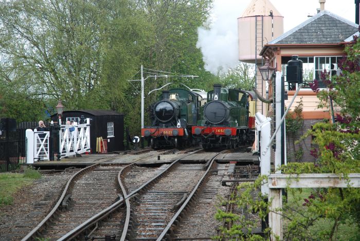7827, 5051 and 5322 outside the loco shed with 9466 on the main demonstration line.