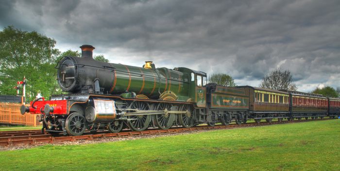 7827 Lydham Manor with the vintage train.