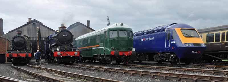 5322, 6023 King Edward II, 18000 and 43024 outside the loco shed.