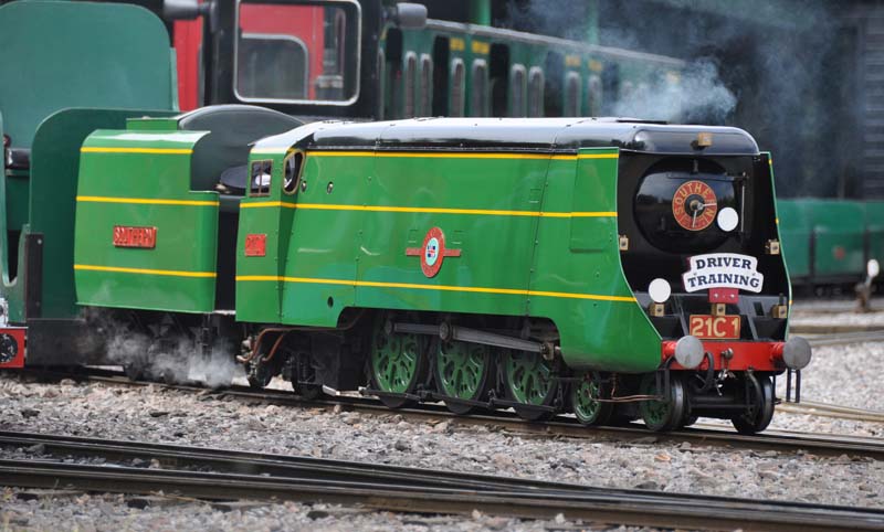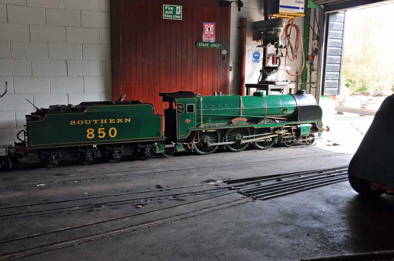 850 Lord Nelson inside the loco shed at Eastleigh Parkway station.