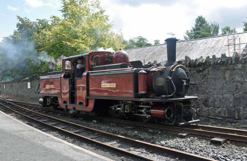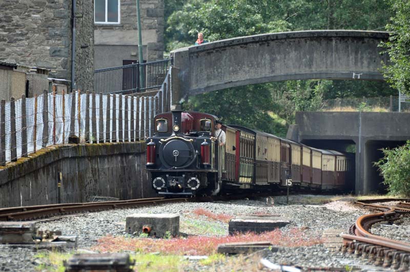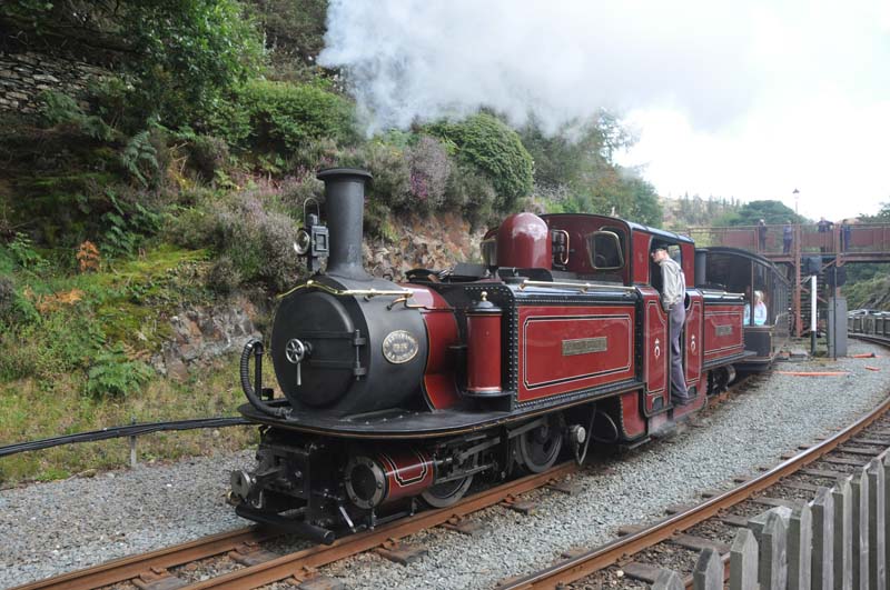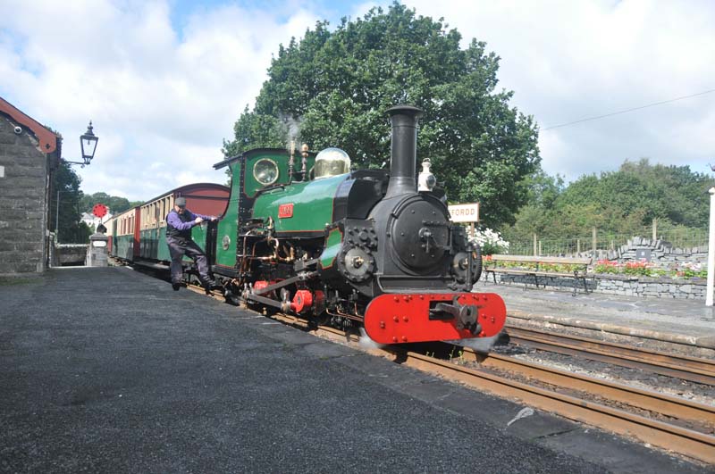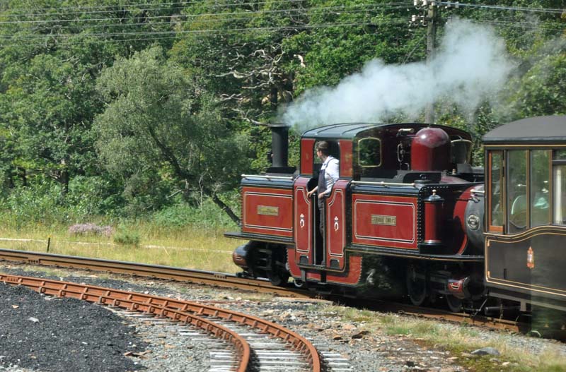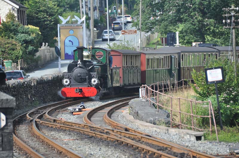 Merrdin Emrys departing from Tan-y-Bwlch.