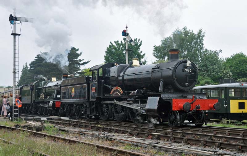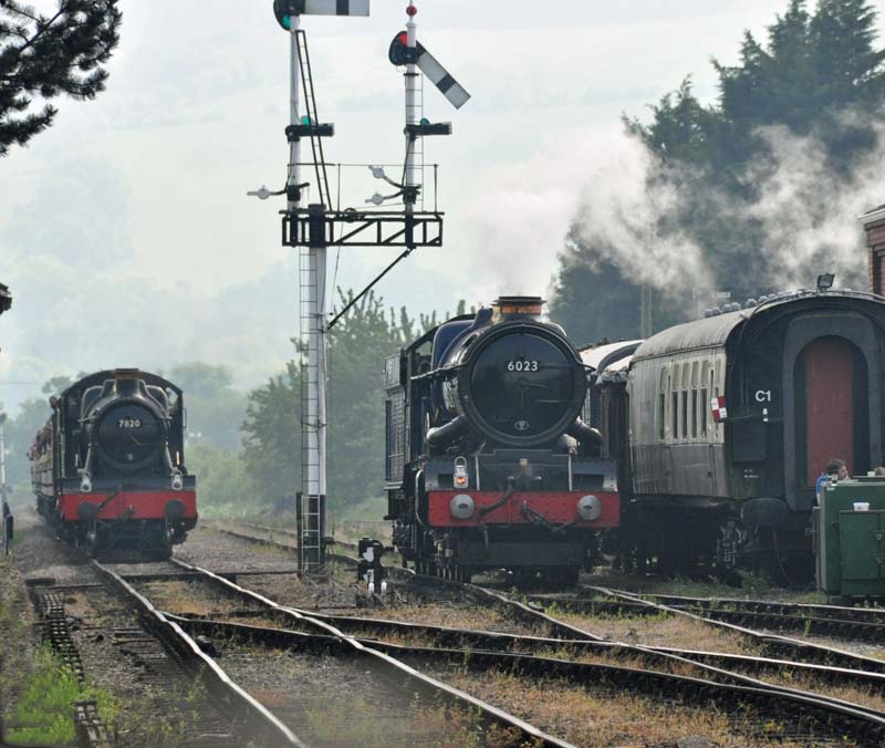 GWR no.7820 Dinmore Manor approaching Toddington while 6023 King Edward II waits.
