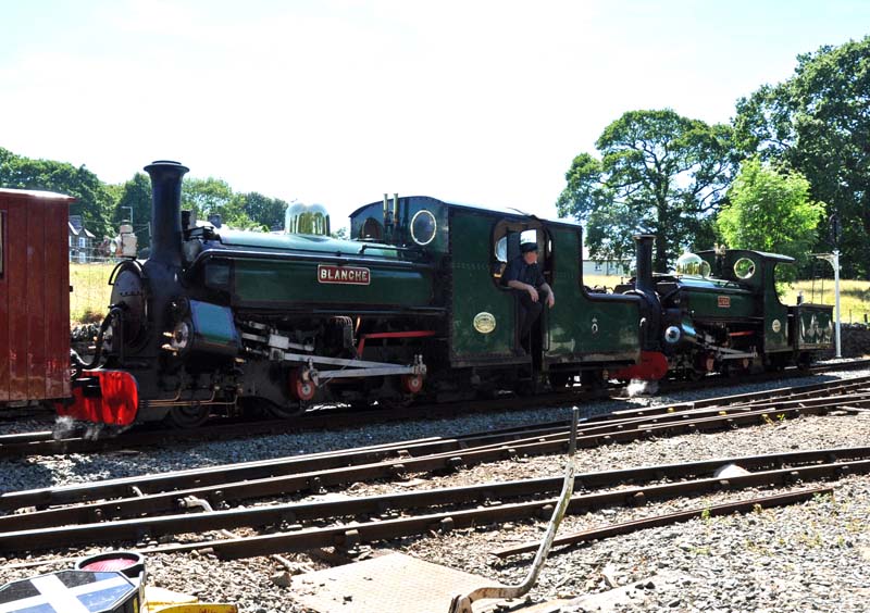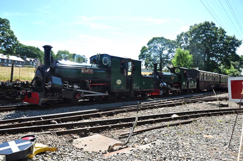 An unusual top and tail working Blanche and Linda on a double-head a train to Porthmadog.