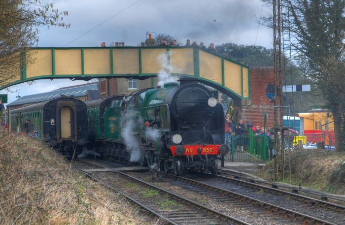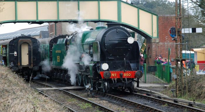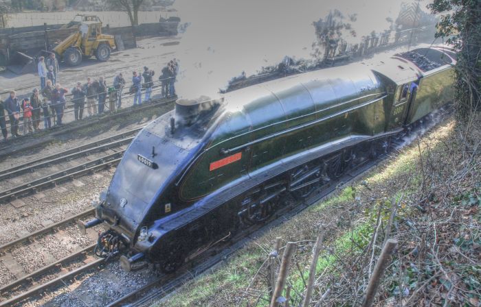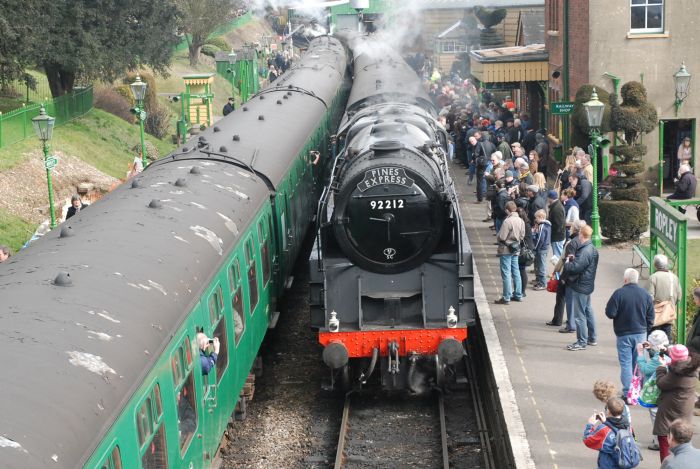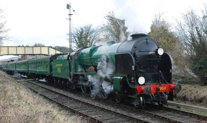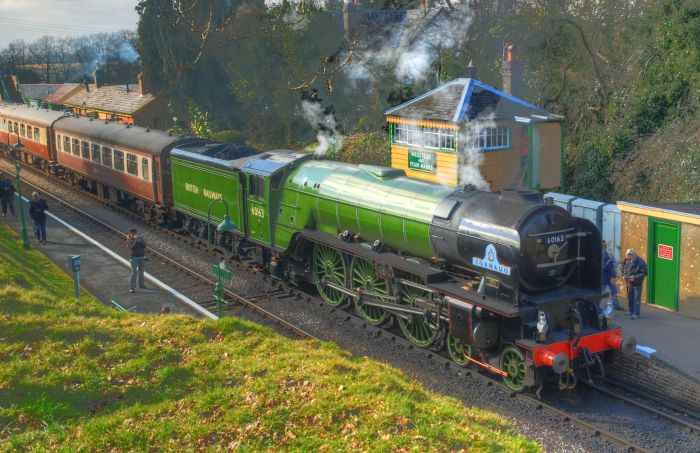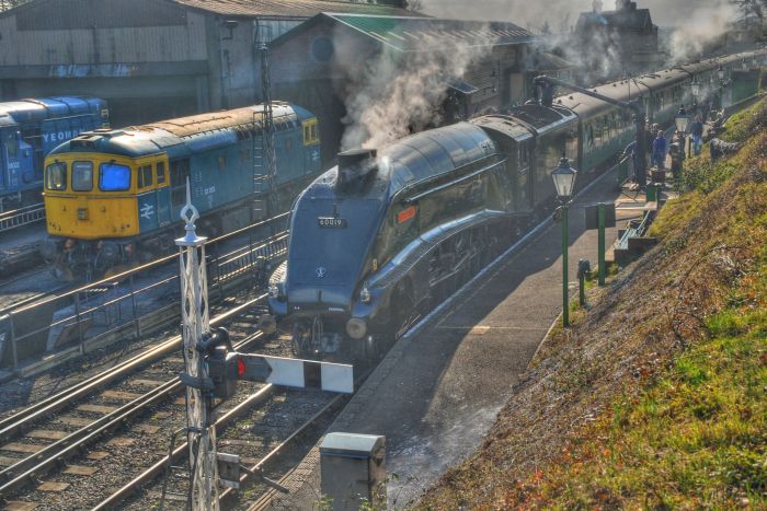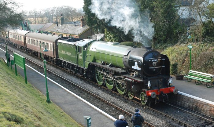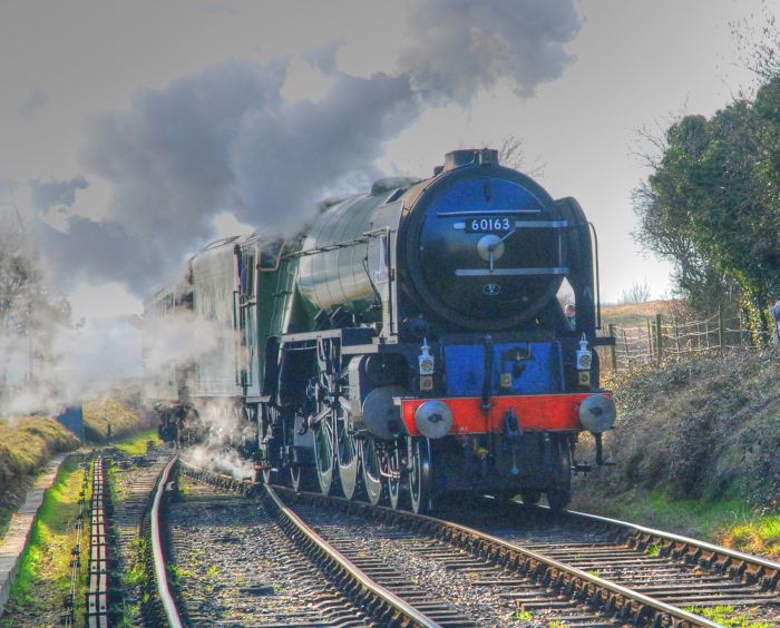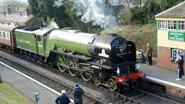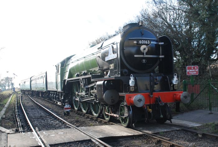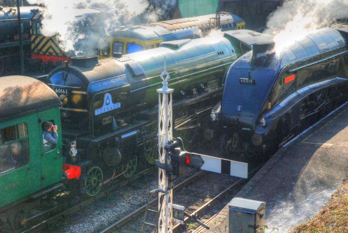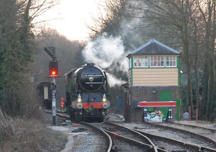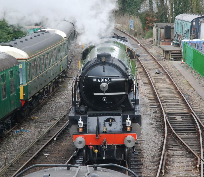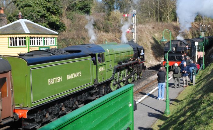 60019 Bittern waits while 60163 Tornado arrives at Ropley.