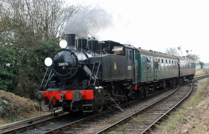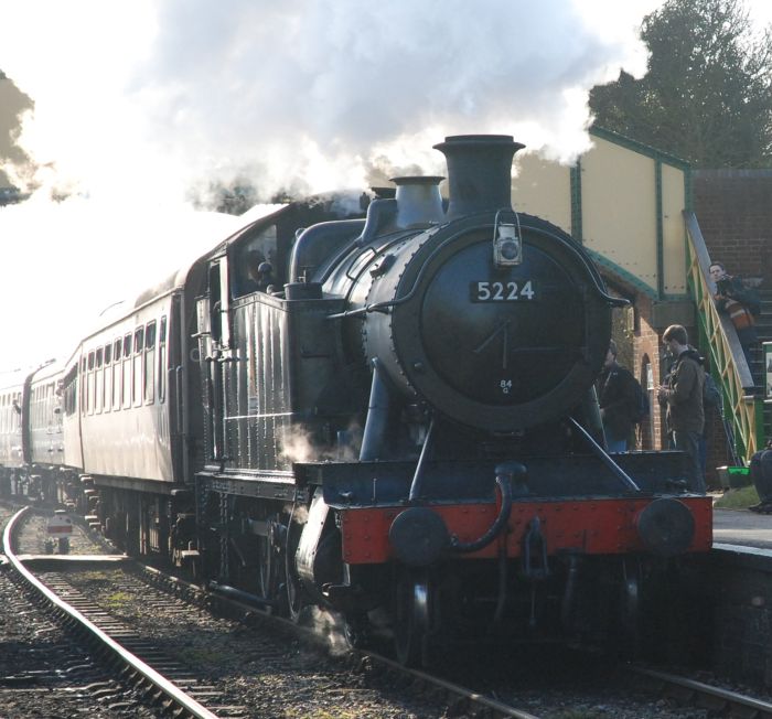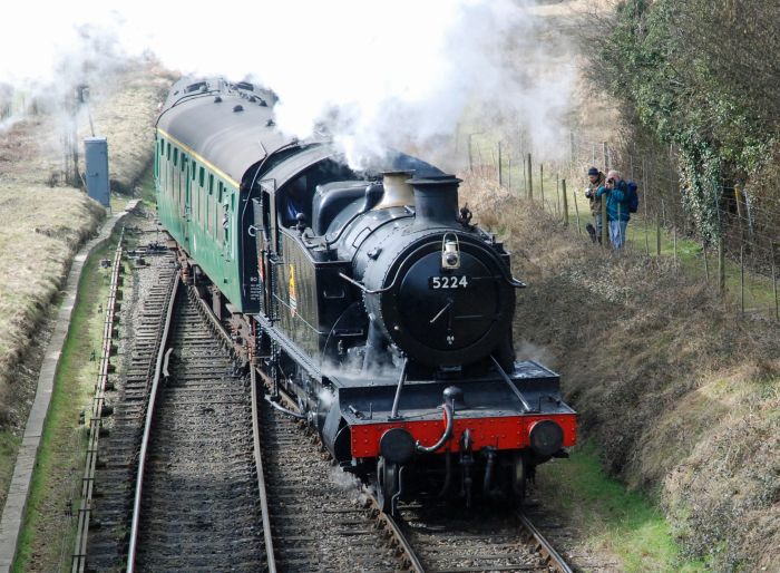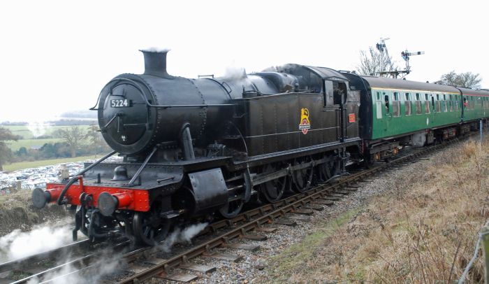 60163 Tornado waits as 5224 arrives at Medstead and Four Marks.