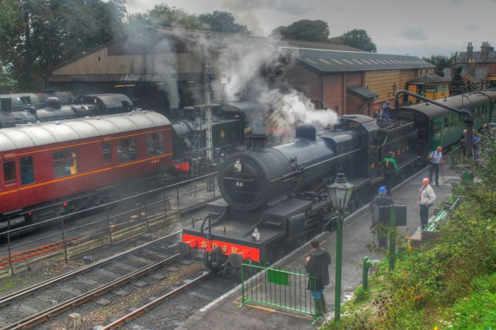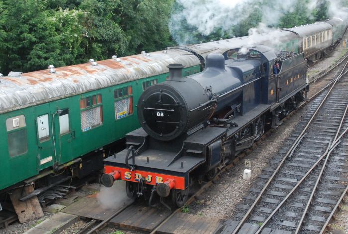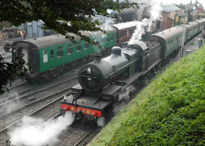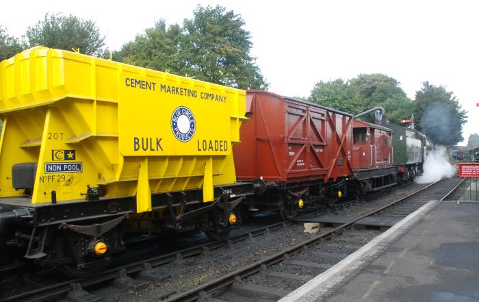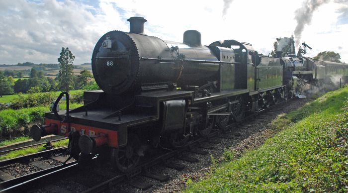 45379 and 34007 Wadebridge double-head a train out of Ropley.