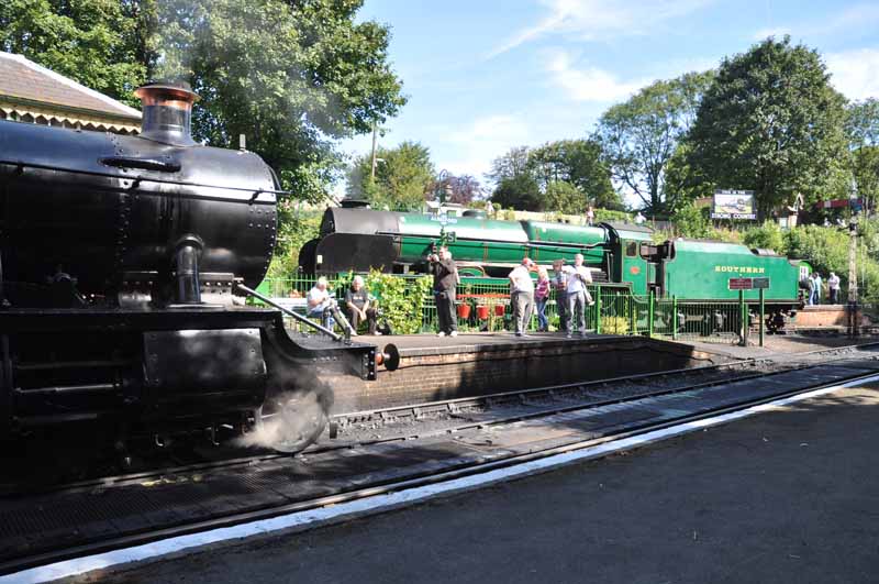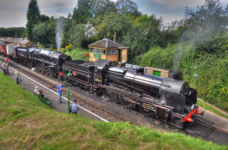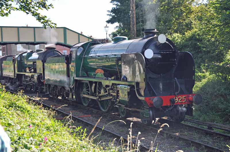 SR Schools class no.925 Cheltenham and SR Lord Nelson class no.850 Lord Nelson departing from Ropley.