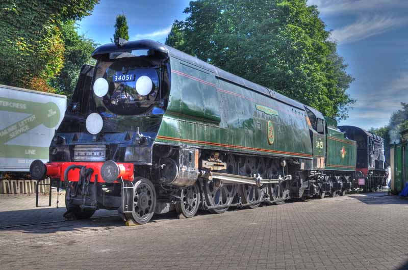 SR Battle of Britain class no.34051 Winston Churchill on static display at Alresford.