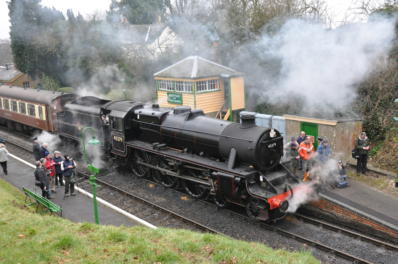 45379 approaching Ropley.