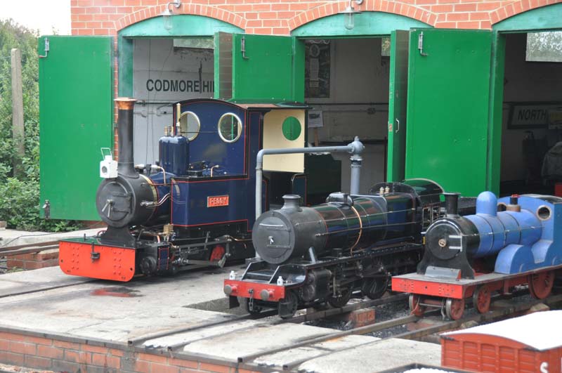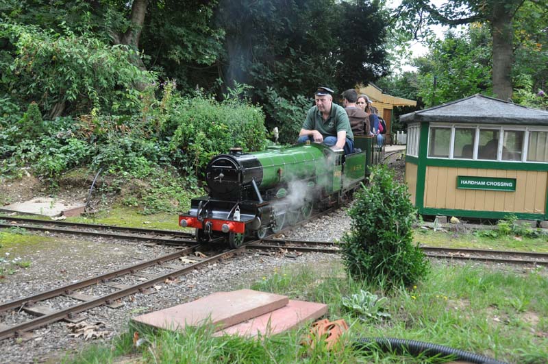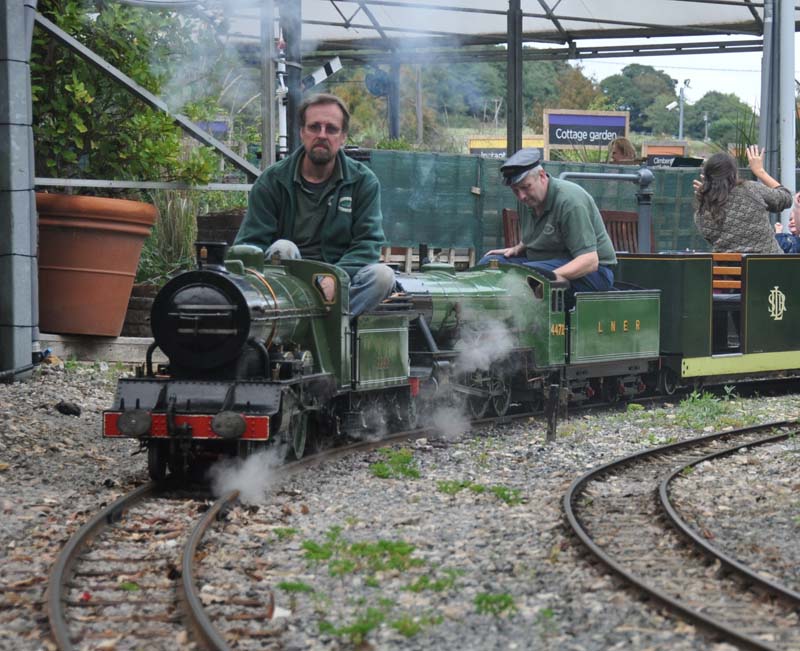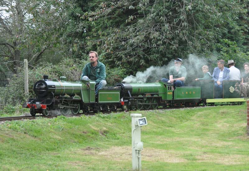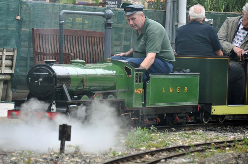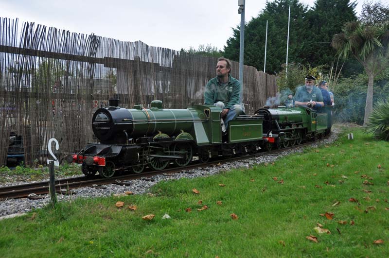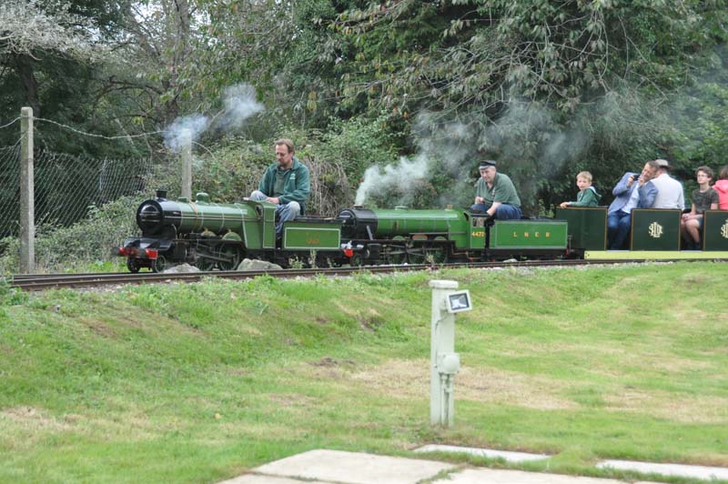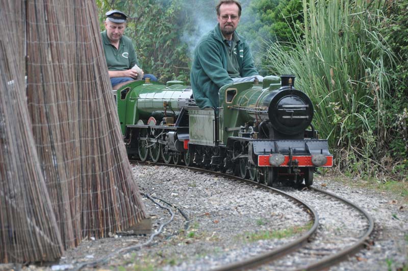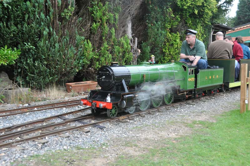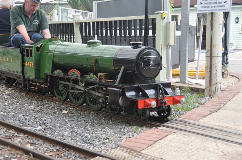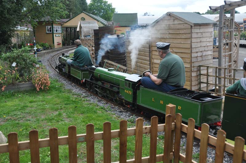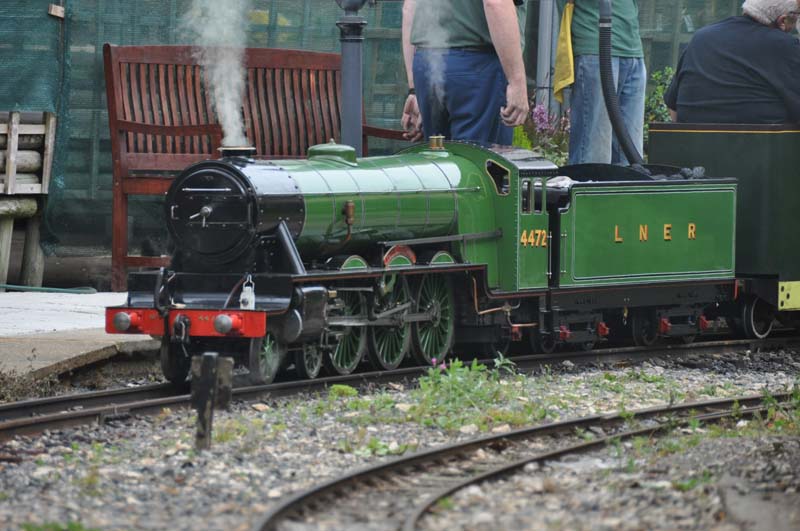 3292 and 4472 Flying Scotsman double-heading a train past the carriage shed.